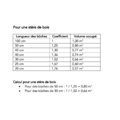 Plus les bûches sont petites et moins elles occupent de place. Pour savoir quel volume va occuper votre bois de chauffage il suffit de diviser le nombre de stère par le coefficient correspondant à la longueur de vos bûches. Plus d’info en visuel !