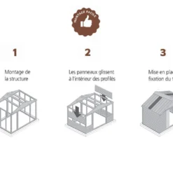 L’abri de jardin bénéficie d’un montage facile grâce à des panneaux qui se glissent simplement dans les profilés de la structure. L’abri de jardin est garanti pendant 12 ans contre la perforation.