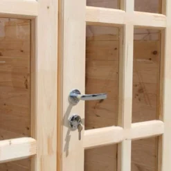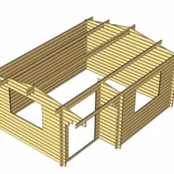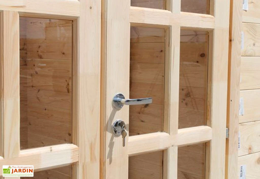 Votre chalet en bois Alpina est fabriquĂ© par Eurovudas Ltd. Il est constituĂ© de planches robustes en bois massif naturel de 44 mm d’épaisseur. Le montage est fait par simple emboĂ®tement. L’abri de jardin dispose d’une entrĂ©e couverte avec une double porte pleine en bois deux ventaux semi vitrĂ©e avec double vitrage de dimensions 1,31 x 1,86 mm (l,h) avec poignĂ©e et serrure, de 2 fenĂŞtres avec double vitrage de 1,38 X 0,91 m (l,h).Â