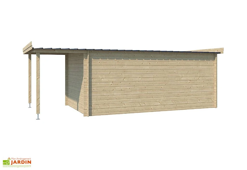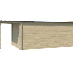 L’abri de jardin Oregon de la marque Gardenas se compose d’un cabanon de 14,9 m² et d’une petite extension couvrant une surface de 3,97 m². Cette dernière constitue un prolongement de la toiture du cabanon sous lequel vous pourrez installer un bûcher ou placer des vélos à l’abri de la pluie, par exemple. Le tout occupera une surface de 18,87 m² une fois monté. L’extension peut être placée à droite comme à gauche.