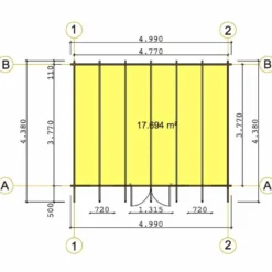 La toiture de l’abri de jardin en voliges de 20 mm est recouverte de feutre bitumĂ© et dispose d’une avancĂ©e de 60 cm en façade. Les dimensions extĂ©rieures de l’abri sont de 4,99 x 3,99 m (l,L). Les dimensions intĂ©rieures de l’abri sont de 4,73 x 3,73 m (l,L). Les dimensions extĂ©rieures hors tout de l’abri de jardin sont : 5,20 x 4,60 m (l,L). Votre abri de jardin de chez Eurovudas est livrĂ© en kit, Ă monter facilement soi-mĂŞme, avec une notice de montage dĂ©taillĂ©e et fournitures associĂ©es.