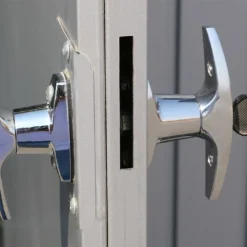 La porte battante comprend un vérin à gaz qui permet d’en amortir l’ouverture et la fermeture. Pour plus de solidité, elle est renforcée et doublée, avec une épaisseur de 33 mm. L’abri est sécurisé par la présence d’une serrure cylindre et de 2 clés.