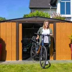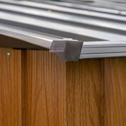 Bien que fabriqué à partir de métal, cet abri de jardin Spacemaker s’est vu doté d’une finition imitation bois pensée pour faciliter son intégration dans tous types d’extérieurs. Ses parois et sa toiture sont toutefois conçues à partir de tôle d’acier galvanisé, un matériau très solide qui ne craint ni les intempéries, ni la rouille, et ce sans exiger de traitement ou d’entretien particulier.