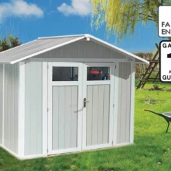 Cet abri de jardin en métal est garanti 12 ans.