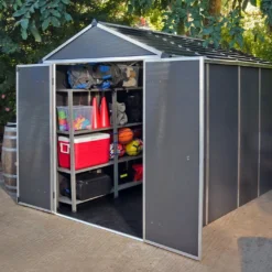 Canopia by Palram propose un abri de jardin en polycarbonate ultra résistant équipé d’un cadre en aluminium renforcé. La belle couleur gris anthracite de ses parois lui confère un look original et contemporain, facile à intégrer dans le jardin.