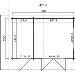 Les nombreuses fenêtres que possède le chalet de jardin lui confèrent une belle luminosité. Il dispose en effet de 2 fenêtres simples de 88,2 x 99 cm et d’une double porte de 149,4 x 185 cm avec vitres intégrées.