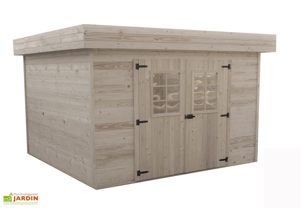 Le bois utilisé pour la conception de cet abri est certifié FSC, ce qui signifie qu’il est issu de forêts gérées de manière durable, dans le respect de l’environnement. Ce bois n’est toutefois pas traité. Vous devrez donc le protéger contre les champignons et les insectes friands de bois tendre, mais également contre l’humidité. Il est alors conseillé d’appliquer une lasure et un traitement fongicide juste avant le montage.