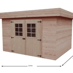 Cet abri de jardin au design moderne est conçu à partir de madriers en épicéa massif de 28 mm d’épaisseur. Le bois utilisé est certifié FSC, et provient donc de forêts gérées dans le respect de l’environnement. Il n’est cependant pas traité, ce qui signifie que vous devrez le protéger contre les insectes et champignons, mais également contre l’humidité en appliquant une lasure et un traitement fongicide.