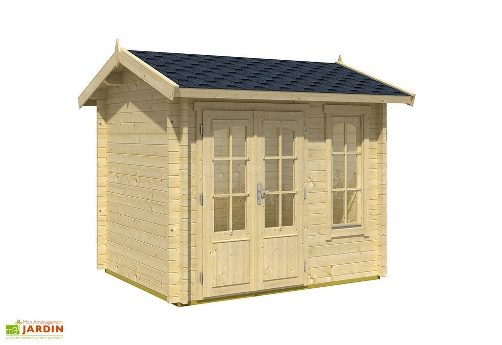 Ce petit chalet de jardin possède des parois constituées de madriers en épicéa massif de 44 mm d’épaisseur qu’il vous faudra assembler. Ces parois supportent un toit à deux pans dont l’étanchéité est assurée par un revêtement en shingle.