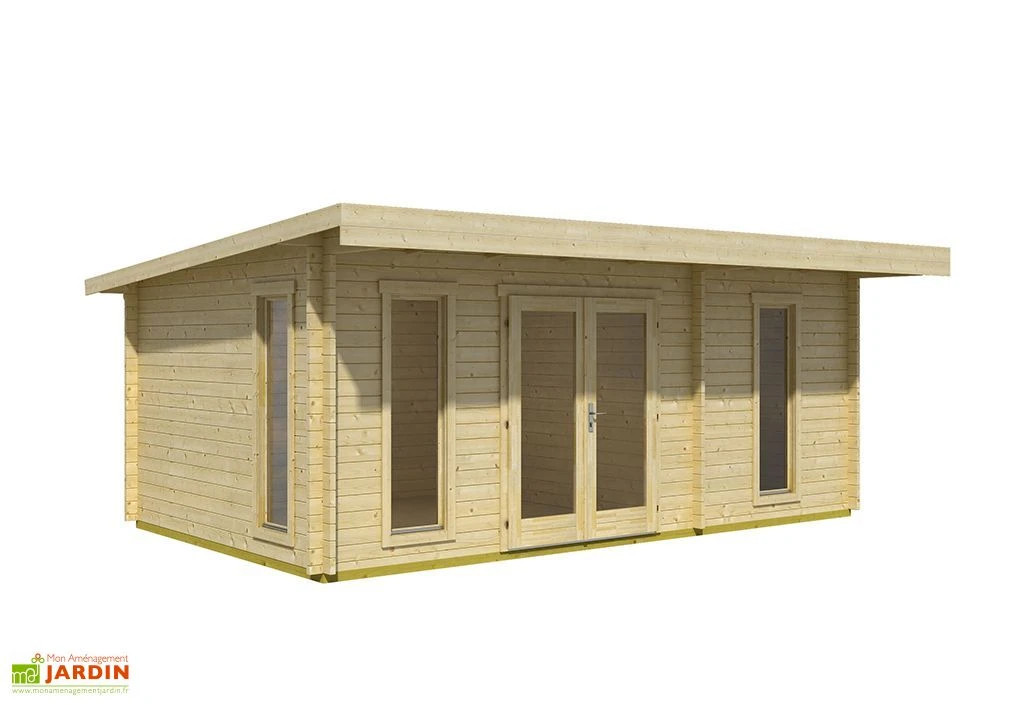 Ce chalet de jardin au design moderne est doté d’une double porte vitrée permettant d’accéder à l’espace principal, d’une porte simple donnant sur la seconde pièce, et de trois fenêtres oscillo-battantes de 56 x 178 cm. Ces portes et fenêtres sont équipées de double vitrage en verre trempé, pour une meilleure isolation thermique et phonique.