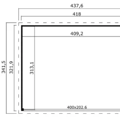 - Dimensions extérieures : 4,18 x 3,22 m (L,l) soit une surface au sol de 13,46 m²