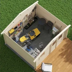 L’abri de jardin Juno de chez Forest-Style est idéal pour ranger votre matériel de jardinage, des outils ou du mobilier de jardin une fois l’hiver venu. Sa surface intérieure de 12 m² lui permettra également d’accueillir des vélos ou des conteneurs, par exemple. Avec des dimensions extérieures de 3,98 x 3,48 m (largeur x profondeur), ce cabanon de jardin en bois occupera une surface de 13,90 m² une fois installé dans votre jardin.