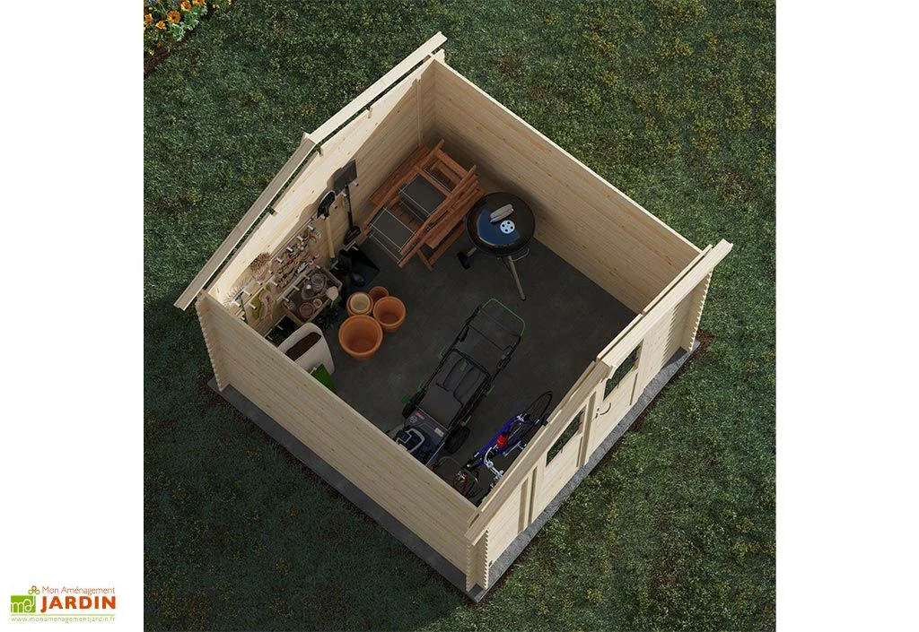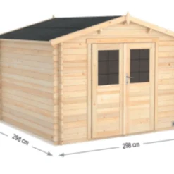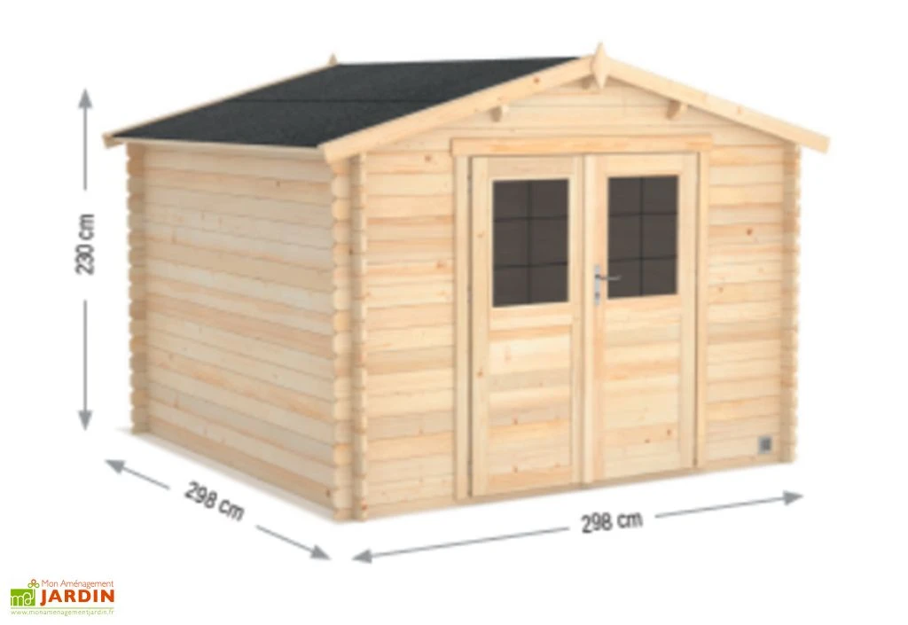 Le cabanon sera livré en kit, c’est ensuite à vous de le monter. Pour vous faciliter la tâche, nous avons favorisé un assemblage des madriers sans effort. La notice détaillée sera également là pour vous guider pas à pas. Une fois installée, la remise de jardin occupera une surface au sol de 8,9 m² (298 x 298 cm). Elle est garantie 2 ans.