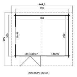 L’abri de jardin Norderney 2 accueillera sans problème un salon de jardin ou pourra très bien faire office d’atelier ou de petite chambre d’amis, par exemple. Il affiche une superficie intérieure de 11,15 m² que vous pourrez aménager à votre convenance. Livré en kit, cet abri en bois devra être monté par vos soins. Une fois installé, il occupera une surface de 17 m² dans votre jardin.