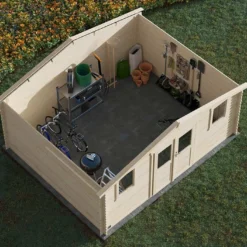 L’abri de jardin de Forest Style offre une surface de 19,8 m² et mesure 498 x 398 cm pour 240 cm de hauteur, idéal pour ranger l’intégralité de vos équipements d’extérieur. Fabriqué en bois d’épicéa du nord d’une épaisseur de 28 mm et certifié FSC (issu de forêts gérées de façon responsable), l’abri est livré brut (à traiter après le montage afin de le protéger de l’apparition de moisissures et d’insectes).