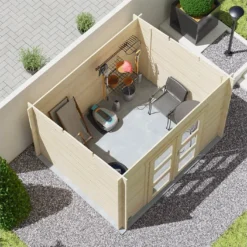 L’abri de jardin de Forest Style est en épicéa du nord certifié FSC, il provient donc de forêts gérées de manière écologique et durable. Il mesure 2,98 x 2,48 m pour 2,18 m de hauteur et couvre une surface de 7,4 m². Son bois dispose d’une épaisseur de 28 mm et il est livré brut (à traiter après le montage pour éviter l’apparition d’insectes ou de champignons).