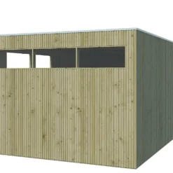 Une fenêtre double de 172 cm de large pour 33 cm de haut agrémente la façade de l’abri. Sur le côté droit, une fenêtre triple de 260 cm de large pour 33 cm de haut vient également apporter de la lumière à votre espace intérieur.