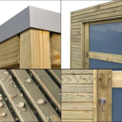 Notez que le bois utilisé pour la conception de cet abri est certifié FSC, ce qui signifie qu’il est issu d’exploitations forestières gérées dans le respect de l’environnement. Avec un espace intérieur de 8,64 m² (2,94 x 2,94 m), ce cabanon design est idéal pour ranger du matériel de jardinage, du mobilier de jardin ou pour aménager un local technique pour piscine, par exemple.