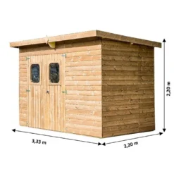 Parfait pour entreposer votre matériel de jardinage, des outils ou du petit mobilier de jardin, ce cabanon en bois offre un espace de rangement de 5,20 m². Il occupera une surface de 5,69 m² une fois installé dans votre jardin et devrait s’intégrer facilement dans votre extérieur grâce à son look moderne et à sa finition naturelle. Sa porte de 160 x 182 cm vous permettra d’accéder aisément à l’intérieur de l’abri, même avec du matériel assez encombrant, et sa toiture couverte de plaques ondulées bitumées se montrera parfaitement étanche.