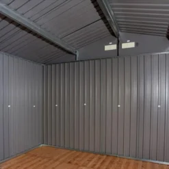 Parfaitement étanche, cette cabane de jardin est dotée d’une toiture à deux pentes, un type de toit permettant de garantir l’écoulement efficace de l’eau de pluie en cas d’averse. Cette toiture profite d’une couverture faite de tôle d’acier galvanisé qui se chargera de garder le contenu de l’abri bien au sec et qui ne rouillera pas. Notez enfin que cet abri de jardin en bois est livré en kit et qu’il devra être monté par vos soins. Une notice détaillée vous sera fournie, ainsi qu’un kit de soubassement pour l’ancrage au sol de l’abri. L’installation devra se faire sur un sol plat et à niveau type dalle de béton.