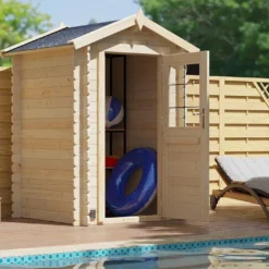 Ce cabanon de jardin est doté de parois de 28 mm d’épaisseur. Il est conçu en bois d’épicéa traité par thermochauffage, un traitement totalement écologique qui consiste à chauffer le bois afin d’en modifier la structure. Le bois se montrera dès lors plus résistant face à l’humidité, aux insectes et autres champignons qui pourraient le détériorer. Aucun traitement chimique supplémentaire n’est nécessaire, et l’abri ne vous demandera quasi aucun entretien. Le bois utilisé est par ailleurs certifié PEFC, donc issu de forêts gérées de manière durable.