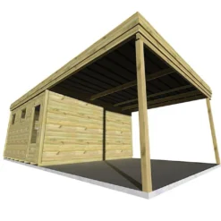 Ce cabanon de jardin, tout comme la structure de l’auvent, est fabriqué en pin sylvestre traité par autoclave classe 3. Il résistera donc aux intempéries, à l’humidité, aux insectes et à la moisissure, le tout sans nécessiter de traitement additionnel ou d’entretien particulier. La quincaillerie est pour sa part conçue en aluminium, ce qui permet d’éviter la rouille qui pourrait l’endommager. La charpente de la toiture et le plancher en bois massif permettant d’isoler le sol de l’abri des remontées d’humidité sont eux aussi traités par autoclave, pour une protection optimale.