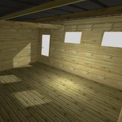 Grâce à sa porte vitrée et à ses deux fenêtres avec vitrages en verre de 4 mm d’épaisseur, cette cabane de jardin se montrera plutôt lumineuse, ce qui est idéal si vous choisissez de l’aménager en atelier par exemple. Ses parois de 27 mm d’épaisseur supportent une toiture monopente totalement étanche grâce à sa couverture en bac acier 65/100. La légère inclinaison du toit (pente de toit : 5°) permettra par ailleurs d’assurer le bon écoulement de l’eau de pluie.