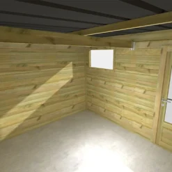 La toiture monopente de cette cabane de jardin est dotée d’une couverture en bac acier ondulé qui assurera la bonne étanchéité de l’intérieur de l’abri. Cette toiture affiche par ailleurs une légère pente de 5° permettant de garantir l’écoulement efficace de l’eau de pluie, évitant ainsi tout risque de stagnation et d’infiltration de l’eau. Sa charpente est elle aussi conçue en bois traité par autoclave.