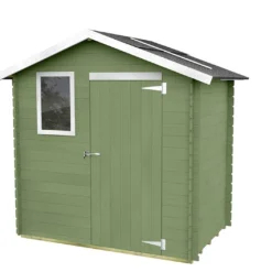 Parfait pour les petits extérieurs, ce cabanon de jardin mesure 1,98 m de large sur 1,30 m de profondeur. Il n’occupera donc qu’une surface de 2,57 m² une fois installé dans votre jardin. Ses parois de 16 mm d’épaisseur sont conçues en pin et sont lasurées (lasure à base d’eau), ce qui permet de protéger le bois contre l’humidité et les intempéries. Le plancher et le sous-plancher en OSB profitent quant à eux d’un traitement par autoclave chargé de les protéger contre les insectes, l’humidité et la moisissure.