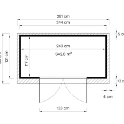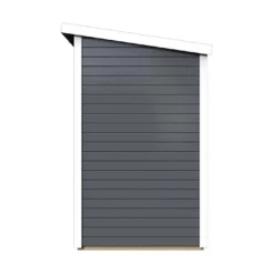 Les parois de 19 mm d’épaisseur de cet abri de jardin en bois soutiennent une toiture monopente en MFP recouverte d’un revêtement en feutre comme première couverture. L’inclinaison de cette toiture permettra par ailleurs d’assurer le bon écoulement des eaux pluviales en cas d’averse. Notez que le toit pourra être incliné vers l’avant ou vers l’arrière, au choix.