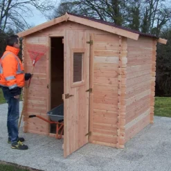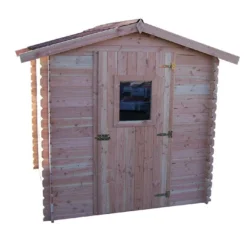 Les parois de ce chalet de jardin sont constituées de madriers de 20 mm d’épaisseur qui s’assemblent avec rainures et languettes. Ces lames sont biseautées pour un aspect esthétique et leur coupe chalet permet un assemblage des parois en angle plus solide et parfaitement étanche. Les parois possèdent une hauteur de 1,79 m.