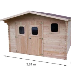 - Surface totale : 15,28 m² – dimensions hors tout : 3,81 x 4,01 x 2,42 m (l x p x h)