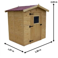 Les dimensions extĂ©rieures au sol de l’abri de jardin sont 1,60 x 1,60 m pour une surface de 2,56 m². Les dimensions hors tout sont de 1,87 x 1,80 x 2,04 m (l,l,h) pour une surface de 3,37 m² et la surface utile intĂ©rieur est de 2,43 m².Â