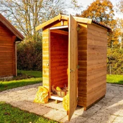 Ce petit abri de jardin Habrita est fabriqué en France. Il pourra parfaitement faire office de remise d’extérieur. Il n’occupe en effet qu’une surface au sol de 1,43 m² mais offre suffisamment d’espace pour vous permettre de ranger votre matériel de jardinage et vos outils.