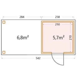Cette cabane de jardin est dotée de parois de 0,9 mm d’épaisseur qui soutiennent une toiture plate (inclinaison du toit : 2°) composée de panneaux sandwich isolés de 4 cm d’épaisseur. Le toit intègre une gouttière avec descente, pour une évacuation efficace de l’eau de pluie pendant une averse, et pourra supporter une charge de neige de 220 kg/m². L’auvent pourra par ailleurs être monté sur le côté gauche ou à droite de l’abri.