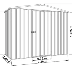 Cet abri de jardin en métal affiche des dimensions extérieures de 226 x 144 cm, pour 200 cm de haut, soit 3,2 m². Ses dimensions intérieures sont de 222 x 140 cm, il dispose donc d’une surface de stockage de 2,2 m², ce qui vous permettra de ranger vos outils de bricolage ou de jardinage.