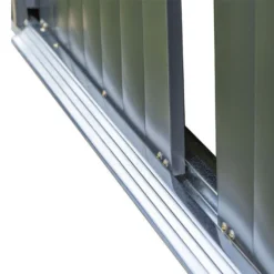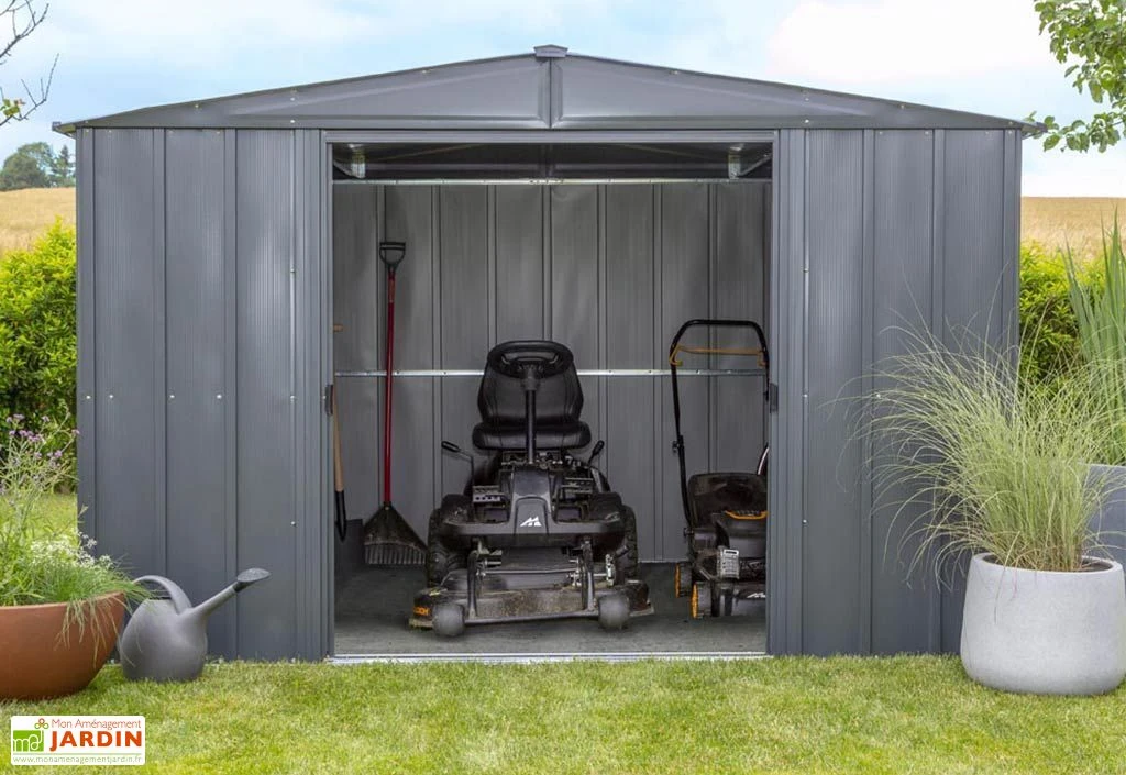 L’abri de jardin est constitué de panneaux résistants d’une épaisseur de 0,3 cm. La toiture supporte une lourde charge de neige de 100 kg/m². Une grande double porte coulissante de 141 cm de largeur et 165 cm de hauteur permet d’entrer et de sortir facilement de l’abri avec des équipements de jardin et outils, même imposants.