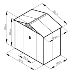 L’abri en métal est équipé d’une double porte coulissante de 90 x 157 cm, de 2 grilles d’aération arrière et d’un kit d’ancrage. La toiture de l’abri est en panneaux d’acier également galvanisé à chaud et pré-peint. La garantie est de 15 ans.