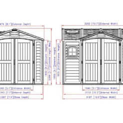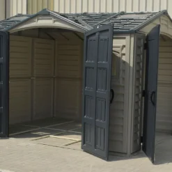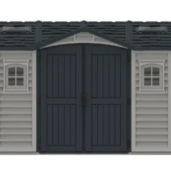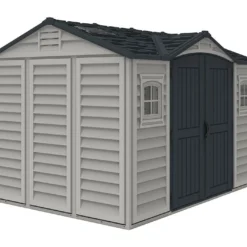 L’abri de jardin Duramax est en PVC de 2 à 3 mm d’épaisseur, un matériau qui ne demande aucun entretien puisqu’il résiste naturellement à la moisissure, aux insectes, aux chocs et à la corrosion. Il mesure 3,26 m de longueur, 2,47 m de largeur et 2,34 m de hauteur. Pratique, sa grande hauteur vous permet de vous déplacer debout à l’intérieur de l’abri.
