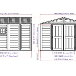 L’abri de jardin en PVC Duramax complète la gamme Woodstyle Premium. Il s’agit du modèle 10 x 10 qui mesure 3,26 m de profondeur, 3,25 m de largeur et 2,33 m de hauteur (dimensions hors tout). Il offre une surface utile de près de 10 m² grâce à ses dimensions intérieures de 3,13 x 3,13 m. Sa grande hauteur vous permet une utilisation confortable puisque vous n’avez pas à vous baisser lorsque vous êtes à l’intérieur.