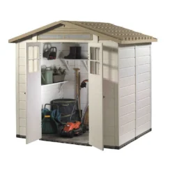 L’abri de jardin est livré en kit. Le montage est simplifié par une notice de montage détaillée en Français et la visserie en acier galvanisé incluse. Il est garanti pendant 5 ans. Il ne demande pas d’entretien et de l’eau savonneuse permet de le nettoyer. Ne pas utiliser de produit abrasif.