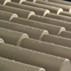 L’abri de jardin est livrĂ© avec son plancher en dalles de bois composite, d’une Ă©paisseur de 4,5 cm. La toiture en ABS (plastique rĂ©sistant) possède 2 pans. Elle est traitĂ©e anti-UV pour Ă©viter la dĂ©coloration et imite les tuiles pour un rendu esthĂ©tique.Â