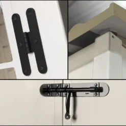 L’abri de jardin en PVC dispose d’une double porte battante vitrée et montée sur charnières. La porte peut se verrouiller à l’aide d’un cadenas non inclus. Elle mesure 98,4 cm de largeur et 173 cm de hauteur.