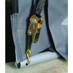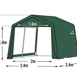Parfait pour protéger des vélos, une tondeuse à gazon ou autre matériel de jardinage des intempéries, cet abri de jardin en toile pourra être fermé grâce à une porte enroulable de 200 x 180 cm. Il mesure 2,40 x 2,40 m et occupera donc une surface de 5,76 m² une fois monté dans votre jardin. Notez que cet abri souple devra être installé sur une surface plane et qu’il devra être fixé au sol grâce aux quatre ancrages fournis. Huit sangles d’arrimage sont également incluses. Elles permettront d’attacher la bâche à la structure.
