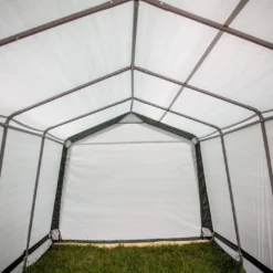Le toit est en double pente afin de laisser l’eau de pluie s’Ă©couler facilement. La garantie est de 2 ans sur la structure et 1 an sur la bâche.