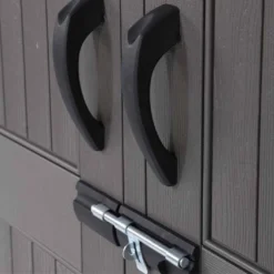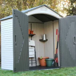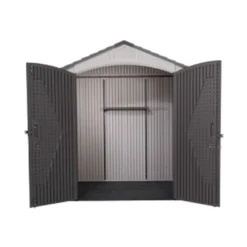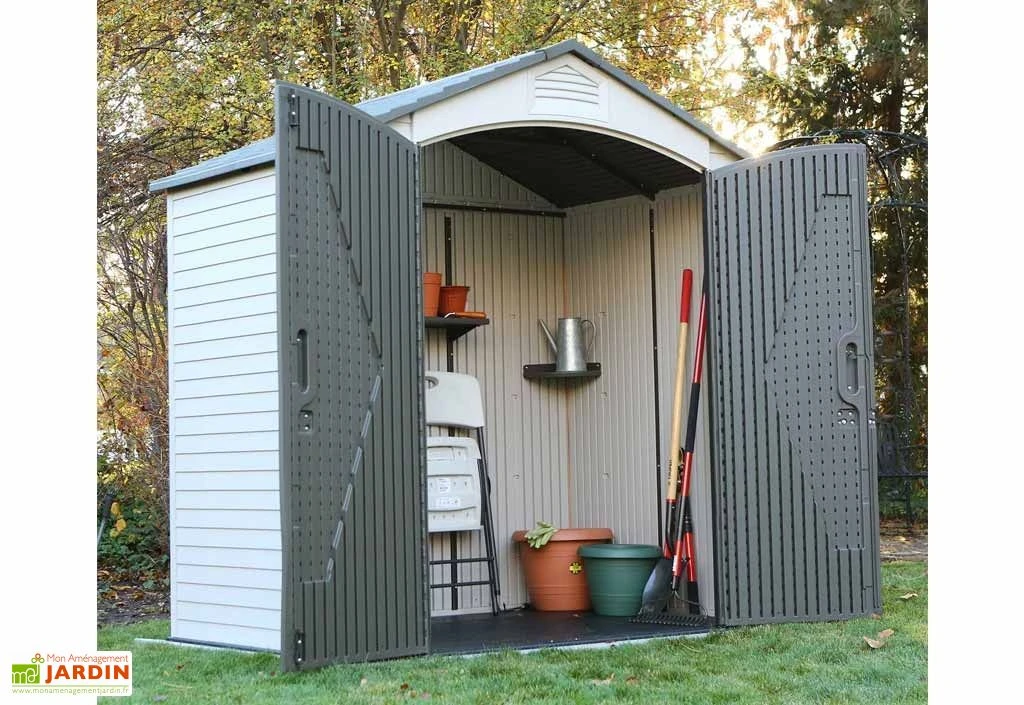Votre abri de jardin en rĂ©sine de chez Lifetime est renforcĂ© grâce Ă sa charpente en acier inoxydable. Ses couleurs passe-partout beige et marron foncĂ© lui permettent de se fondre naturellement dans votre jardin.Â