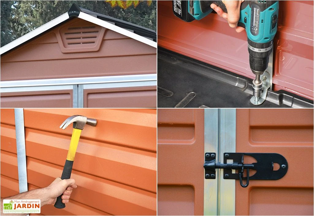 Votre abri de jardin en résine vous assure une grande longévité et ne demande aucun entretien, ni traitement contre le moisissure ou la rouille. Vous pouvez nettoyer votre abri à l’eau. L’abri se monte à 2 personnes facilement et peut être déplacé une fois monté. Votre abri est garanti 10 ans. Il est certifié ISO 9001, ISO 14001.