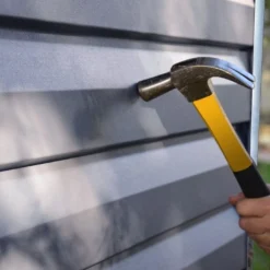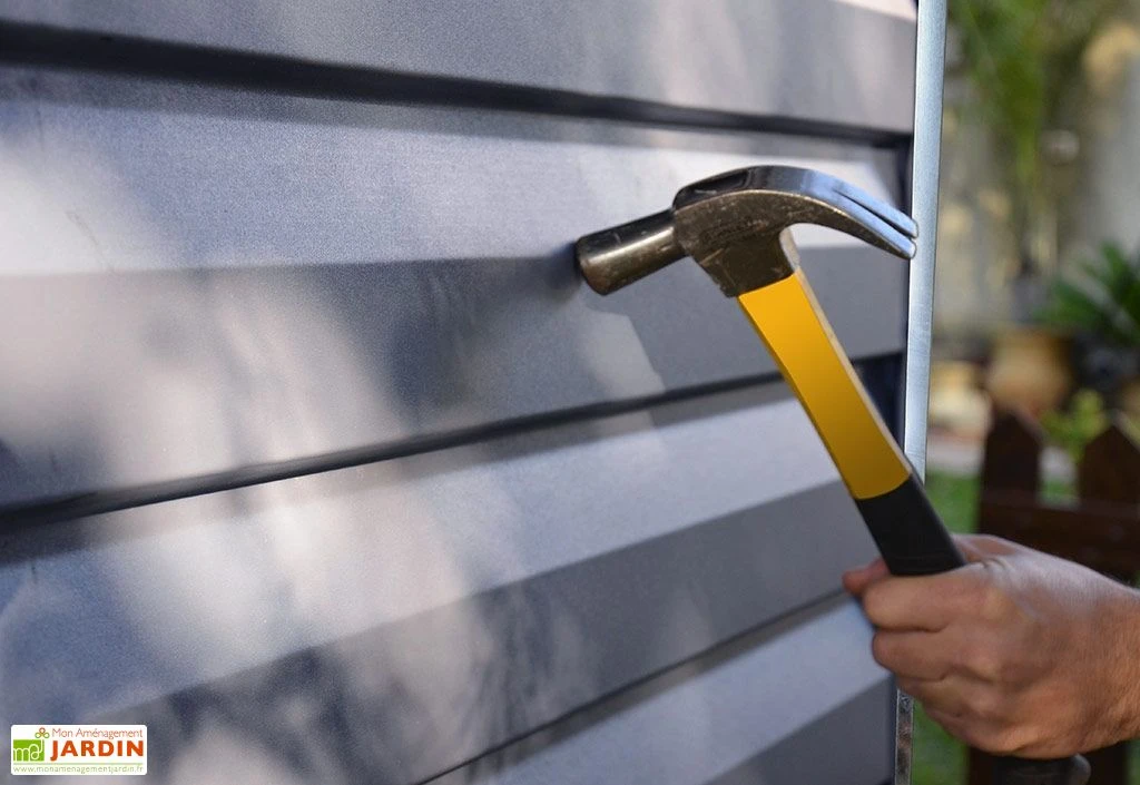 L’abri de jardin est respectueux de l’environnement puisqu’il est 100% recyclable. Il est livrĂ© en kit mais se monte très facilement, d’abord grâce Ă une notice de montage complète et dĂ©taillĂ©e en Français mais aussi grâce au système « Slide & Lock ». LittĂ©ralement ce système signifie « Glisse et Verrouille », permettant ainsi d’assembler et de bloquer les pièces facilement.Â