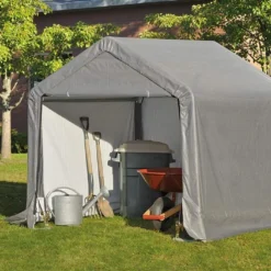L’abri de jardin Shelter Logic est un abri de jardin souple qui mesure 180 cm de longueur et de largeur et dispose d’une hauteur de 200 cm. Sa surface de 3,24 m² vous permet de stocker votre matériel de jardin, une moto ou des vélos. Il est équipé d’une porte de 150 cm de largeur et 130 cm de hauteur. La porte dispose de deux fermetures à glissière. Des caoutchoucs permettent de la fixer pour la laisser ouverte si besoin.
