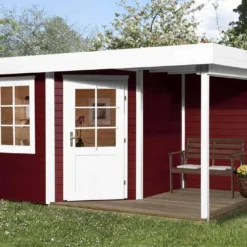 L’abri de jardin design Fides 2 de chez Weka est fabriquĂ© en bois massif d’une Ă©paisseur de 28 mm pour les parois, et 19 mm pour la toiture et le plancher. Grâce Ă son système moderne de vissage, l’emboĂ®tement des parois est invisible.Â